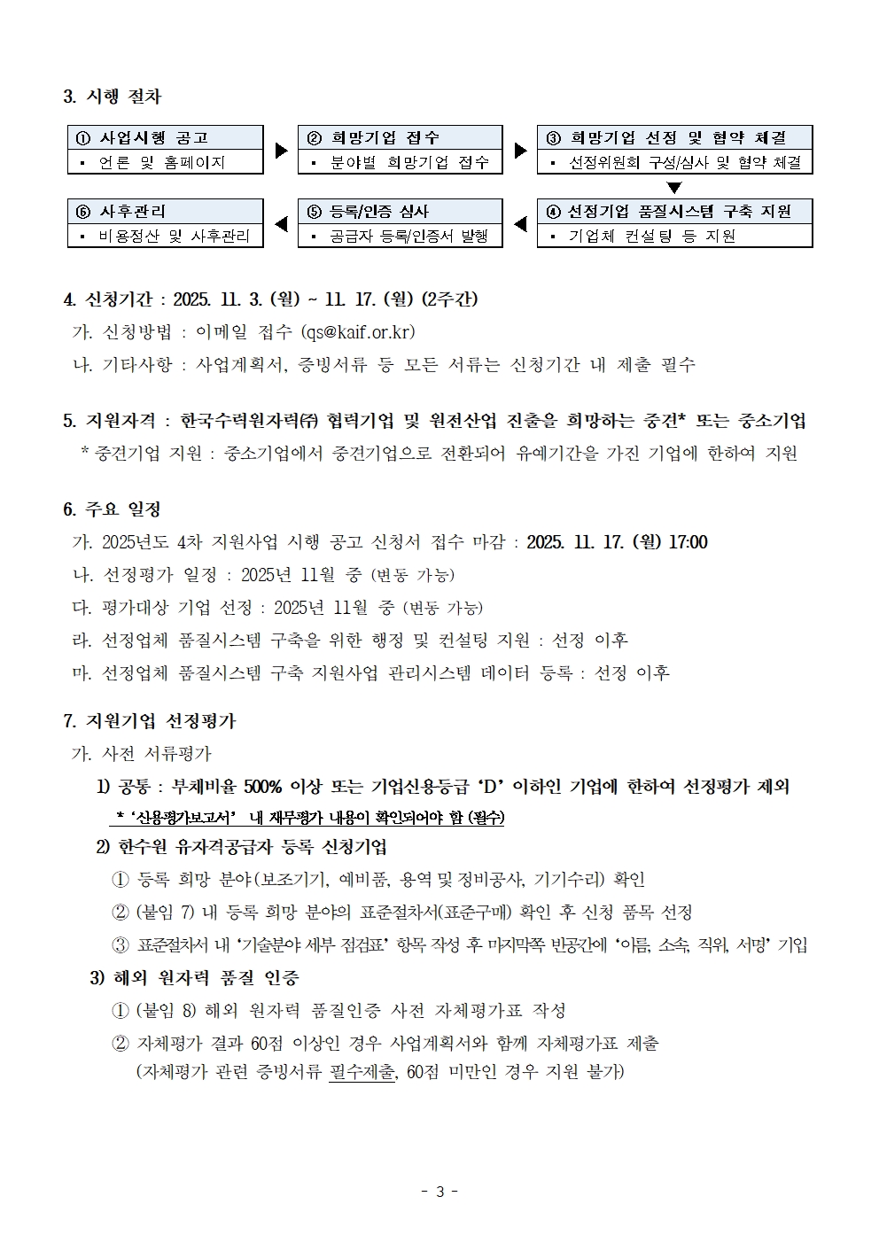 (Q3) 2025년 4차 때 '한수원 유자격 공급자 등록'으로 지원사업 신청하려고 합니다. 지원 절차가 어떻게 되나요?