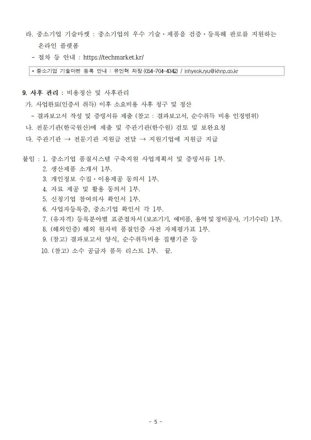 특히 (붙임 7)은 '한수원 유자격 공급자 등록 지원' 신청 기업만, (붙임 8)은 '해외 인증 지원' 신청 기업만 해당 서류를 제출합니다.