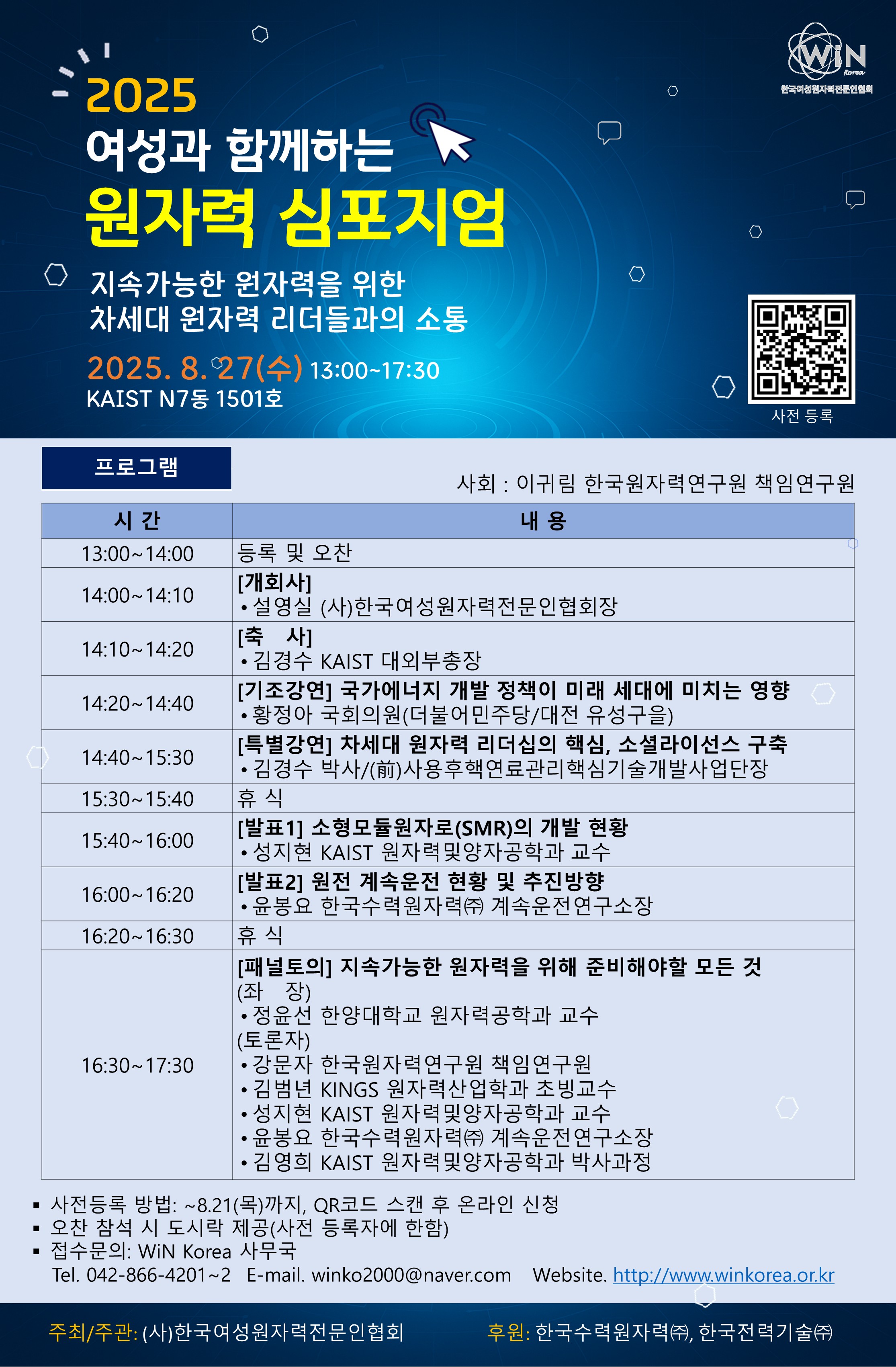 [한국여성원자력전문인협회] 2025 여성과 함께하는 원자력 심포지엄 안내(8. 27.)