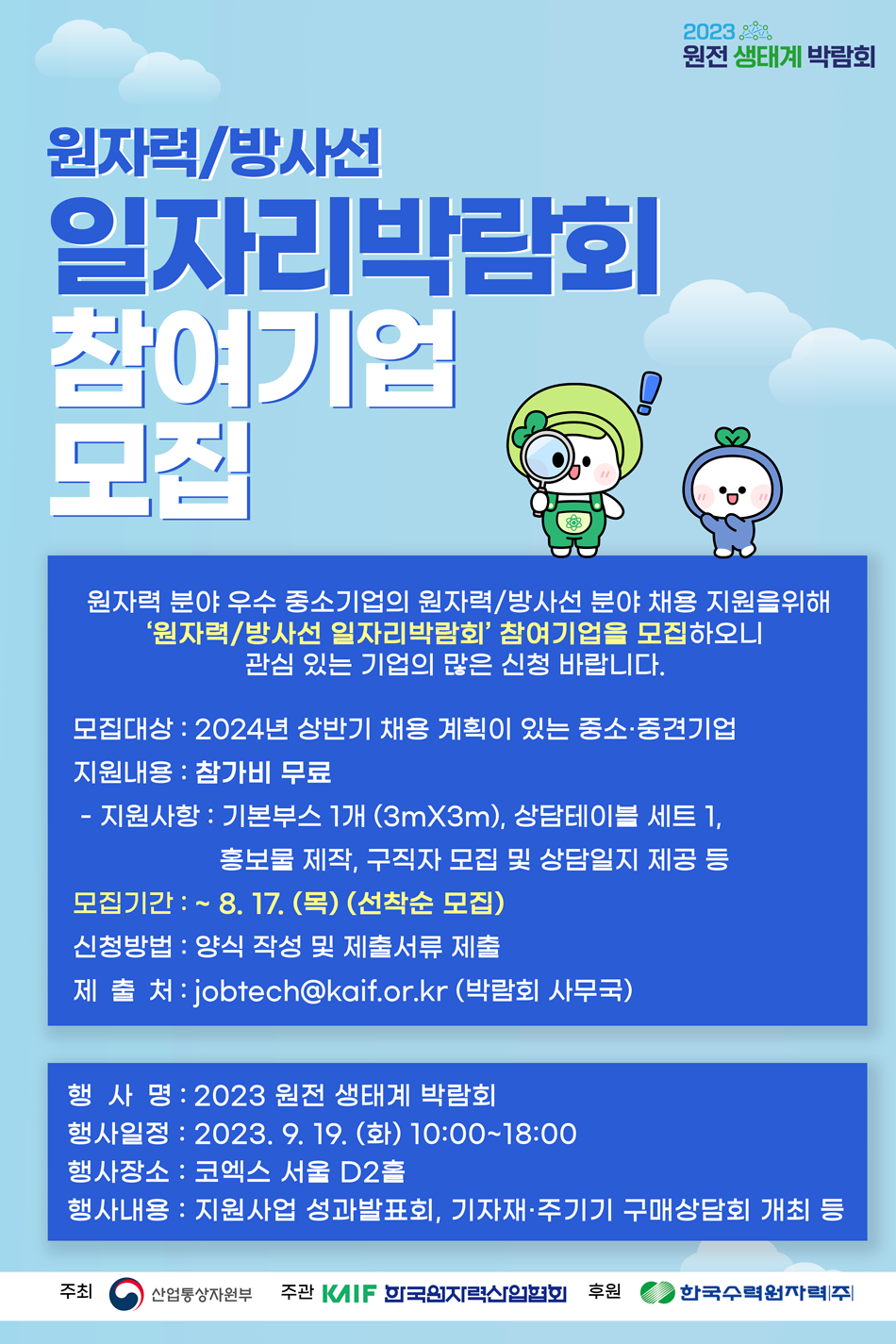 (추가모집) 2023 원전 생태계 박람회 - 원자력/방사선 일자리박람회 참여기업 모집 (~ 8. 31.)