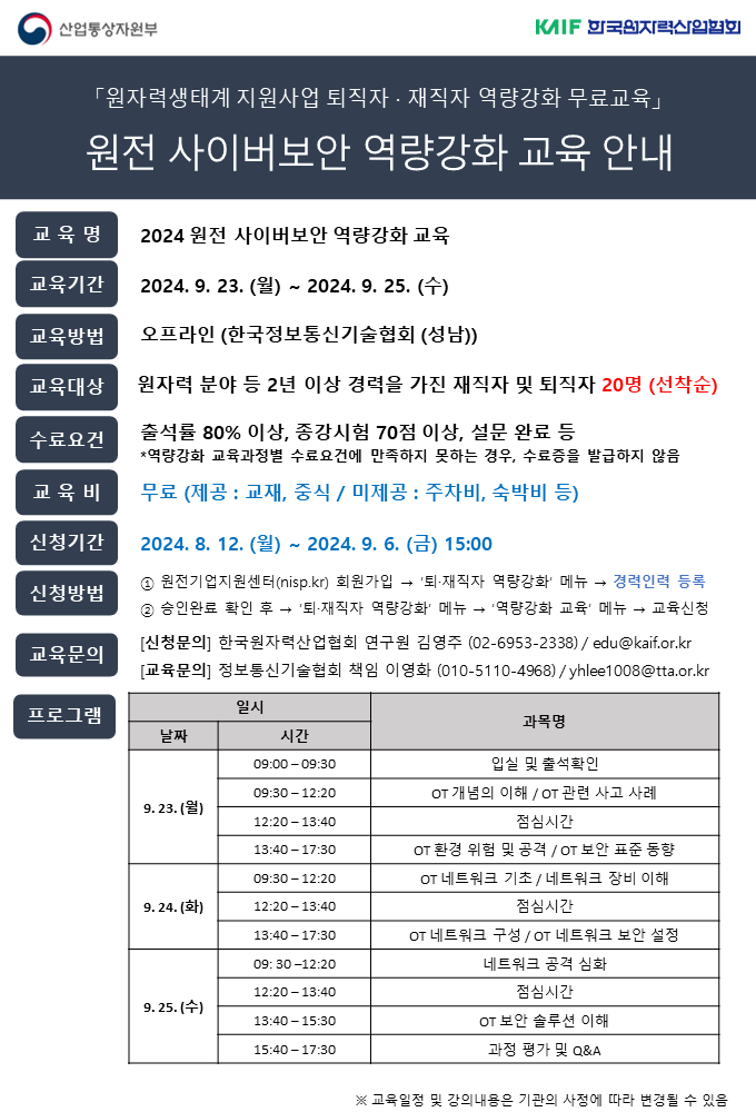 2024 원전 사이버보안 역량강화 교육 교육생 모집 (마감)